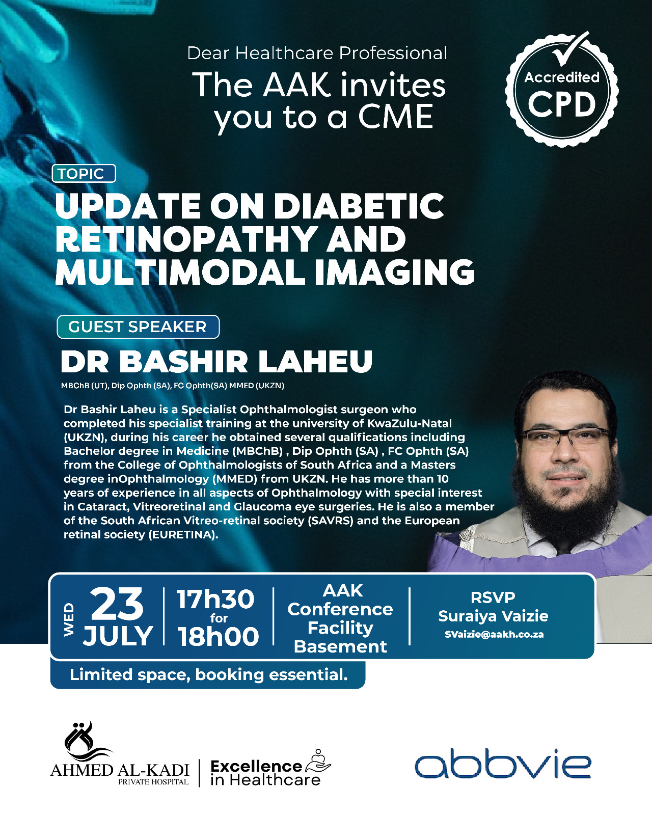 Meet Dr. Bashir Laheu, Specialist Ophthalmologist at Ahmed Al-Kadi Private Hospital, proudly part of the AAK Mission Cataract Project. Alongside…